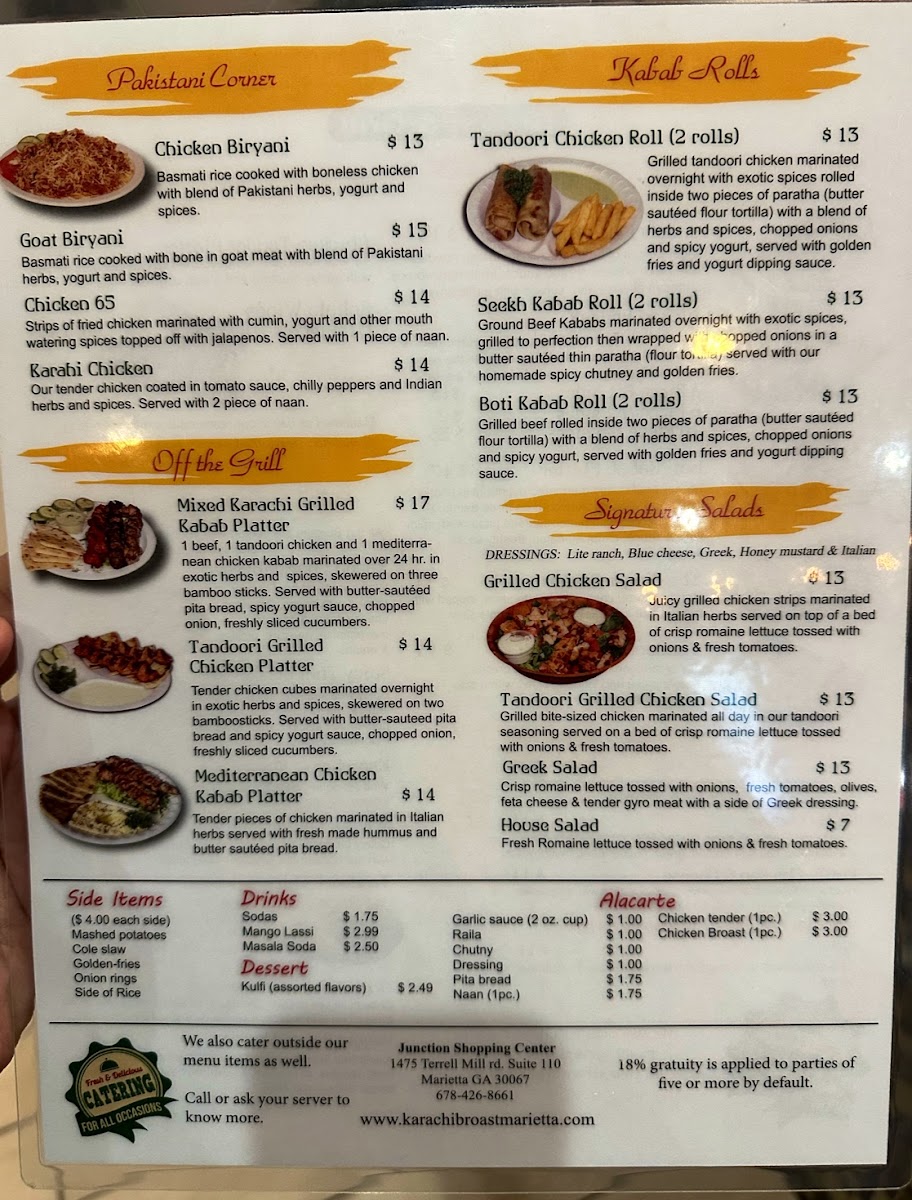 If you're in the mood for something delicious and satisfying, Karachi Broast & Grill Marietta Menu has just what you're craving. Nestled at 1475 Terrell Mill Road SE in Marietta, this place offers an array of mouthwatering dishes that will take your taste buds on a flavorful journey. Whether you're stopping by for a quick bite or a hearty meal, the menu caters to all kinds of cravings. From perfectly grilled kebabs to crispy broasts, there's something for everyone here. Each dish is prepared with the freshest ingredients, bringing a taste of authenticity to the heart of Marietta. Whether you're in the mood for something spicy or a bit milder, every dish packs its own distinct punch. Be sure to try some of their signature specialties that will keep you coming back for more!